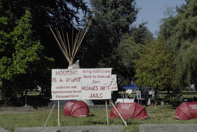 In Hamilton, people pinned memories of those who’ve died to a board displayed at City Hall. In Montréal, people gathered at Émilie-Gamelin Park announcing the event with the message: “Because we don’t want these people to be forgotten, for their loved ones to cope with their loss with respect.” In Vancouver the Vancouver Area Network of Drug Users (VANDU) held a march asking attendees to wear black. Their march was complete with a black coffin used to represent the lives lost.