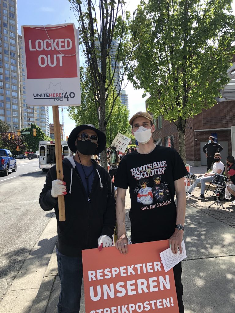 The march ended outside the Metrotown Hilton by joining the hotel workers of UNITE-HERE 40’s picket line. Since last summer a number of hotel chains have terminated thousands of long-term staff, the majority of them racialized women. Hotel owners have used the slow down in tourism due to the pandemic to justify these layoffs, but workers see it as a deliberate attempt to break the union and rehire workers at lower wages once the pandemic is over.