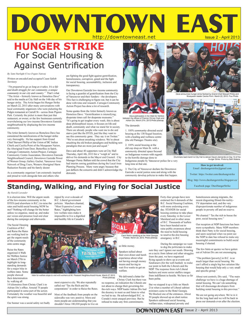 Homeless Dave’s hunger strike against the DTES housing crisis; Sanctuary City from below; No to immigration officers in the DTES; Hipsters and gentrification; Canadian prison racism; and more