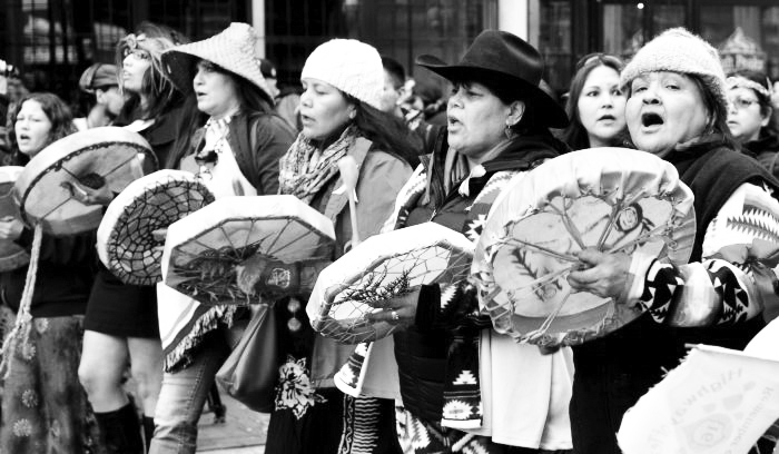 The Leap Manifesto includes two reforms that would help Indigenous people. Both of these reforms are demands coming from Indigenous political movements from the last 30 years. First, it says that Indigenous people should be recognized under the United Nations Declaration on the Rights of Indigenous Peoples. 144 countries voted in favour of the UN Declaration in 2007, but four countries voted against: Canada, United States, New Zealand, and Australia. The UN Declaration is not legally binding but countries tend to take it seriously. If Canada voted for the Declaration, it would recognize Indigenous peoples’ right to culture, language, and equal job and school opportunities. And it would recognize Indigenous rights to ancestral lands. Signing on to the Declaration could allow First Nations, Inuit, and Metis to go to court and challenge Canada to give back land that is currently occupied by settlers. The UN Declaration could help Indigenous people in Canada to fight inside the colonial government.