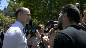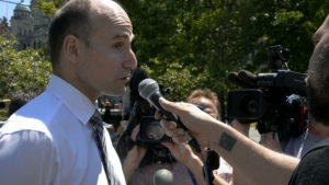 As the rally was about to begin in the square beside the hotel, the Federal Minister responsible for housing, Jean-Yves Duclos, walked in with an entourage of grinning men in suits. The rally MC, Ivan Drury from Alliance Against Displacement, called him to the stage. Pressed for numbers of how much money the feds would specifically make available for new social housing construction, Duclos answered only with, “we appreciate your passion for the issue.” His voice got softer and softer with repeated challenges for the simple answer he refused to give. Video on the TV show him and his entourage leaving to chants of “Trudeau lies, people die.” His evasive and noncommittal comments on the stage foreshadowed the results of the Minister’s meeting, which promised only a Canada-wide consultation, a new website, and no new homes.