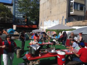 Right now we have more than 30 tents set up; maybe 50 or 60 people staying in them. And for all the people who are set up in tents there are twice as many looking for tents. It’s really hard every night, people come looking for tents and we have to turn them away because we don’t have enough. These are people who would be somewhere else in the city. Everyone down there lives in a shitty SRO or on the street.
