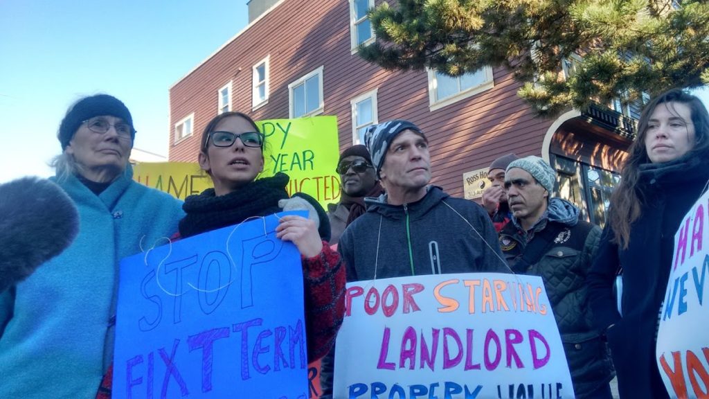 A boisterous crew was standing outside the Ross Hotel in Vancouver on New Years Day. We had called a news conference to support the residents, tenants of this single room occupancy (SRO) hotel who were being evicted and some who received huge rent increases. One of the tenants told us that the landlady had just de-activated her key fob so she couldn’t get into the building, her room and home. We all watched, along with a few TV cameras, as she tried the fob at the front door and couldn’t get in.