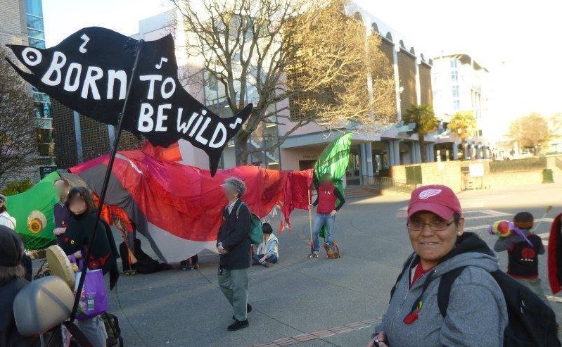 Mary was born in Bella Bella. Working as an archaeologist for many years, she made sure anyone doing archaeology in Heiltsuk territory was held to ethical standards. Coming from a fishing family Mary was passionate about Indigenous food sovereignty, and even after moving to Lekwungen lands continued to source 70-80% of her food from Heiltsuk territory. Whether leading a vocal takeover of aquaculture meetings, pushing a 27-foot salmon puppet through downtown streets, throwing rotten farmed fish on the Legislature lawn, organizing Heiltsuk food events, taking part in ceremony to cleanse waters, or teaching, Mary was steadfast in defense of wild salmon and herring.