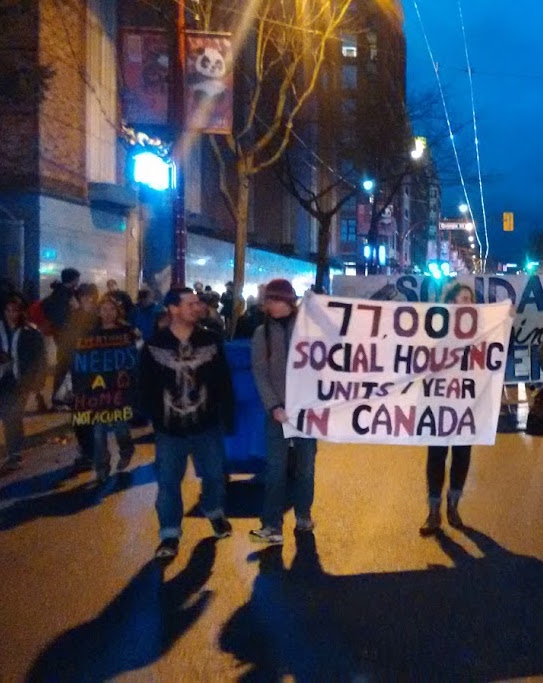 One interesting feature of the provincial announcement is the amount of money per unit that the province is paying to different housing providers. For example, in Vancouver the province is paying the city $4.8 million or about $21,500 per unit to rebuild Roddan Lodge as a 223 unit mixed income building. They are also paying Beedie developers $7.3 million for 25 units of seniors housing, or $292,000 per unit. Why is the province paying the non-profit group more than ten times less per unit than they are paying the profit making developer, Beedie? The Beedie site is one that the Chinatown Concern Group and others are calling on the city to buy and use for 100% welfare/pension rate housing.
