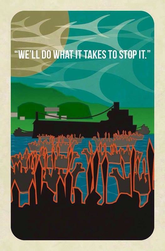 Opposition to the pipeline has also been strong on the north side of the river, especially from the Tsleil-Waututh, Squamish and Musqueam First Nations, allied with environmentalists and social movements, where the concerns include a 7-fold increase in oil tanker traffic on the Burrard Inlet going from 5 to 34 ships every month. Their united efforts to make a full court press of legal challenges is still continuing on appeals, but also, like Kwantlen, they have vowed to do “whatever it takes” to stop the pipeline encroachments.