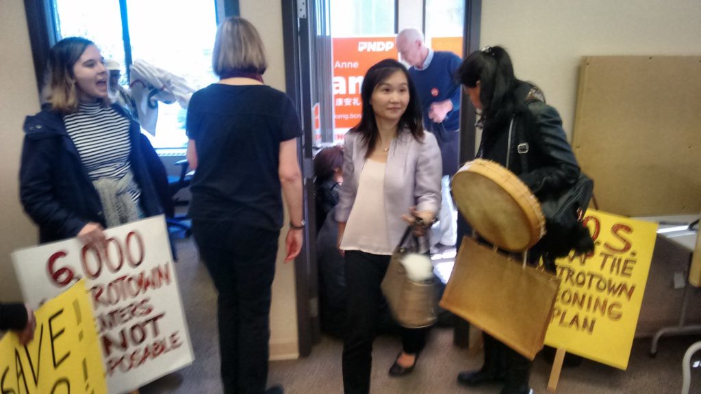 Our criticism of the NDP’s platform and candidate has only been reinforced by your party’s unfortunate decision to take a callous stance against our community and your staff’s display of unprincipled behaviour. We are writing now to correct the record about what happened in Anne Kang’s office, and to urge you to reverse this decision, come out on the side of the people, and oppose the development corporations–because our community is not going anywhere. Your BCA affiliates cannot “rezone” us into silence, however hard they try. Our community refuses to be displaced again.