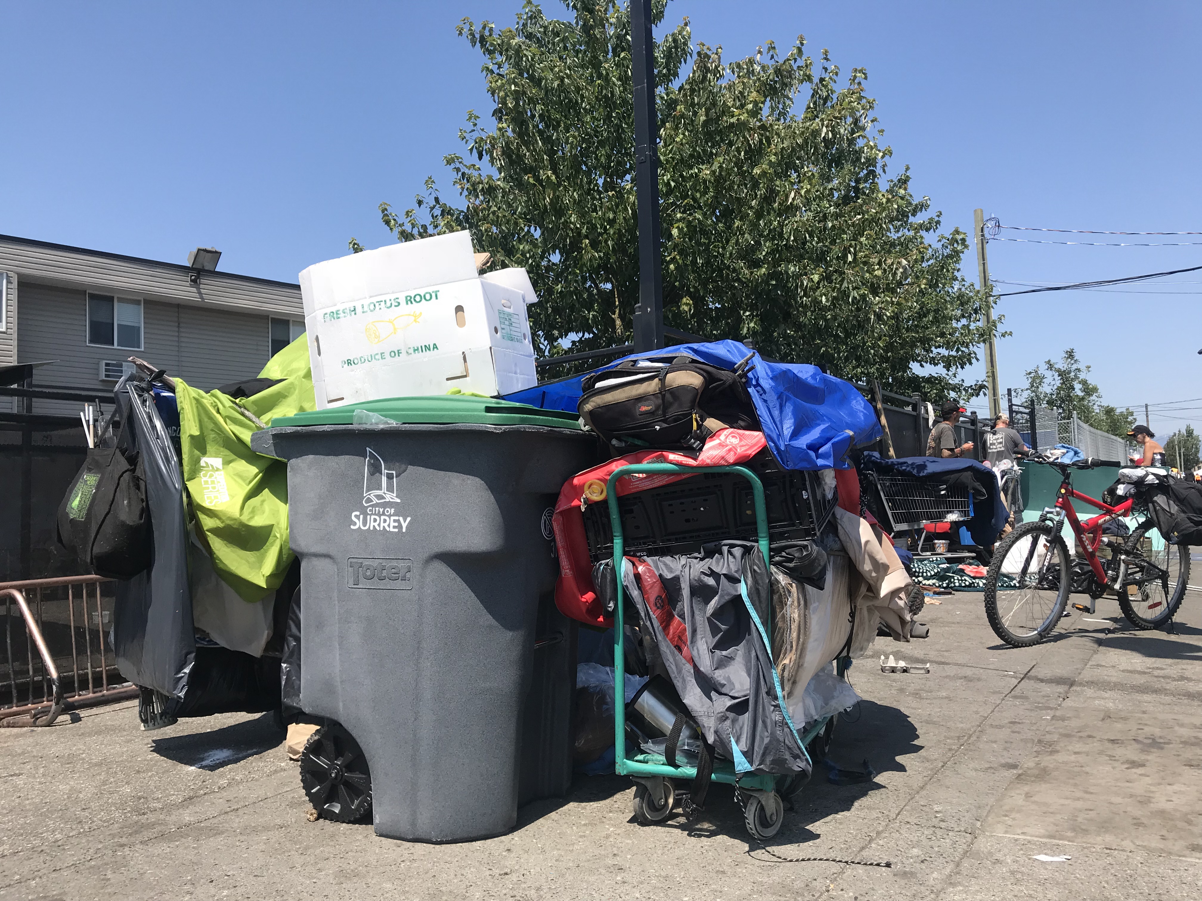 The Surrey Strip is sometimes referred to in media as a “tent city” but it is more accurate to call it an “outdoor prison,” says longtime advocate Dave Diewert, who is an organizer with Alliance Against Displacement. Diewert knows the difference because he has organized in support of tent cities in Maple Ridge, Vancouver, Abbotsford, and Nanaimo. “In tent cities, homeless people organize their own communities and create a place where they get respite from police harassment and surveillance,” he said as he stood on 135A. “The Strip is totally controlled by the RCMP. The police force homeless people to come here, where they constantly patrol tent-to-tent and do search-and-seizures.”
