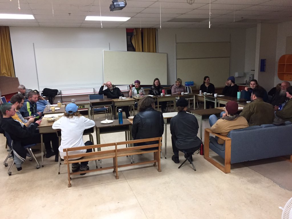 The Schoolhouse Squat was on the occupied territory of the Snuneymuxw nation. Our group never made a claim to “own” the building or the land, instead pledging to use both for the survival of Discontent residents and others without shelter. The goal of the squat was to establish a thriving community where we could protect ourselves from winter conditions and the relentless violence of the City and police, while also fighting to abolish property rights, which are built on the continual oppression of working class and Indigenous people. As Rod articulates, “the City and the Province weren’t doing what they said they would do. So we did it ourselves”. Under Section 7 Charter rights, which are supposed to protect the security of a person and protection of personal belongings, we took an empty building to protect and defend ourselves.