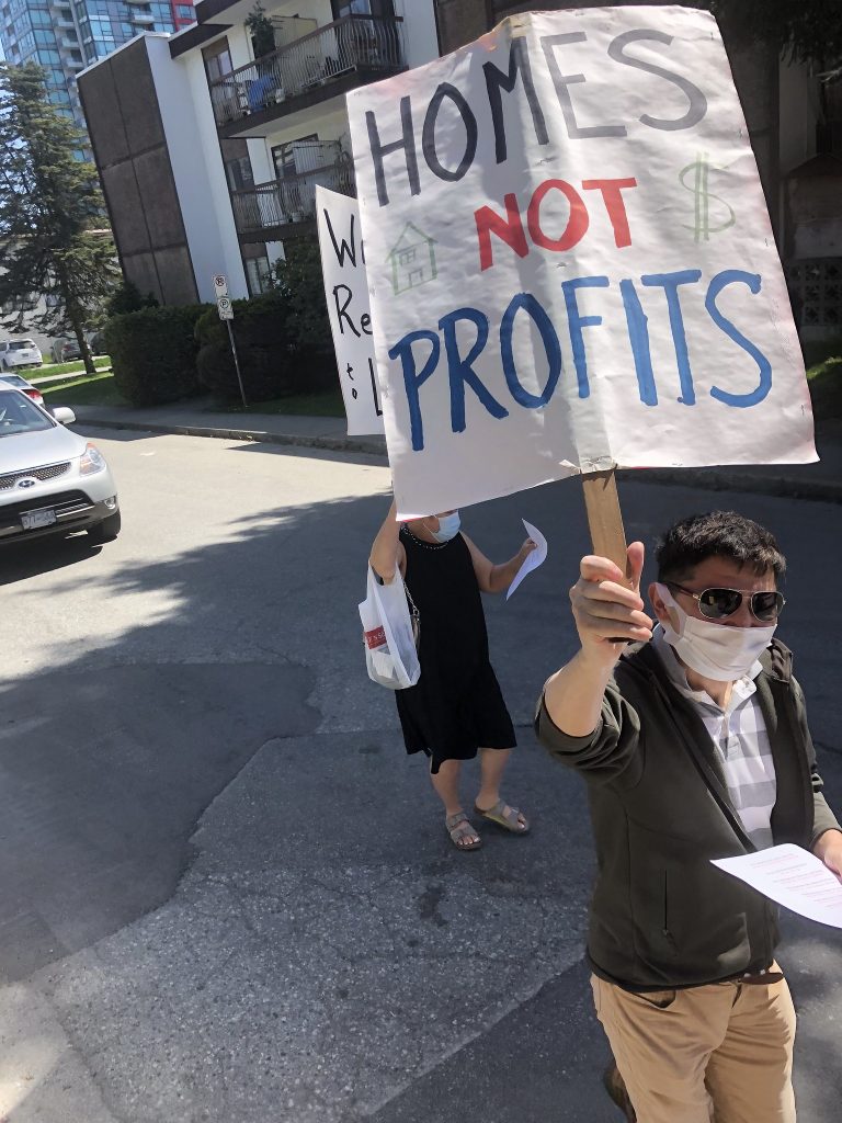 For the past 4 months the Dow Avenue Tenants Group (DATG) has been fighting back against their developer-landlord, the Peterson Group, who have used disrepair and direct harassment as a way to force people out of their homes. On Saturday May 15th tenants in Metrotown took to the streets to speak out publicly against the failures of Burnaby’s Tenant Assistance Policy and to connect their fight with the struggle of others, both globally and locally.